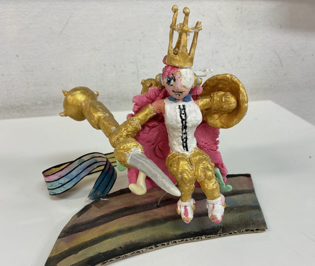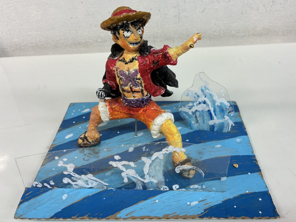 「ワンピース」のキャラクターシリーズです!細かいところまでよく観察して、どう再現したらいいのか試行錯誤しながらつくっていました。教室の入り口にあり、いつもみんなが「お〜!」と注目しています。