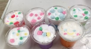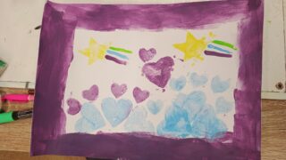 開催中の大阪万博 EXPO2025のキャラクター「ミャクミャク」を、手で割れるモザイクチップを使って作りました。チップはさまざまな形に割れるので、合う形を探したり貼ったりとても大変ですががんばりました!!